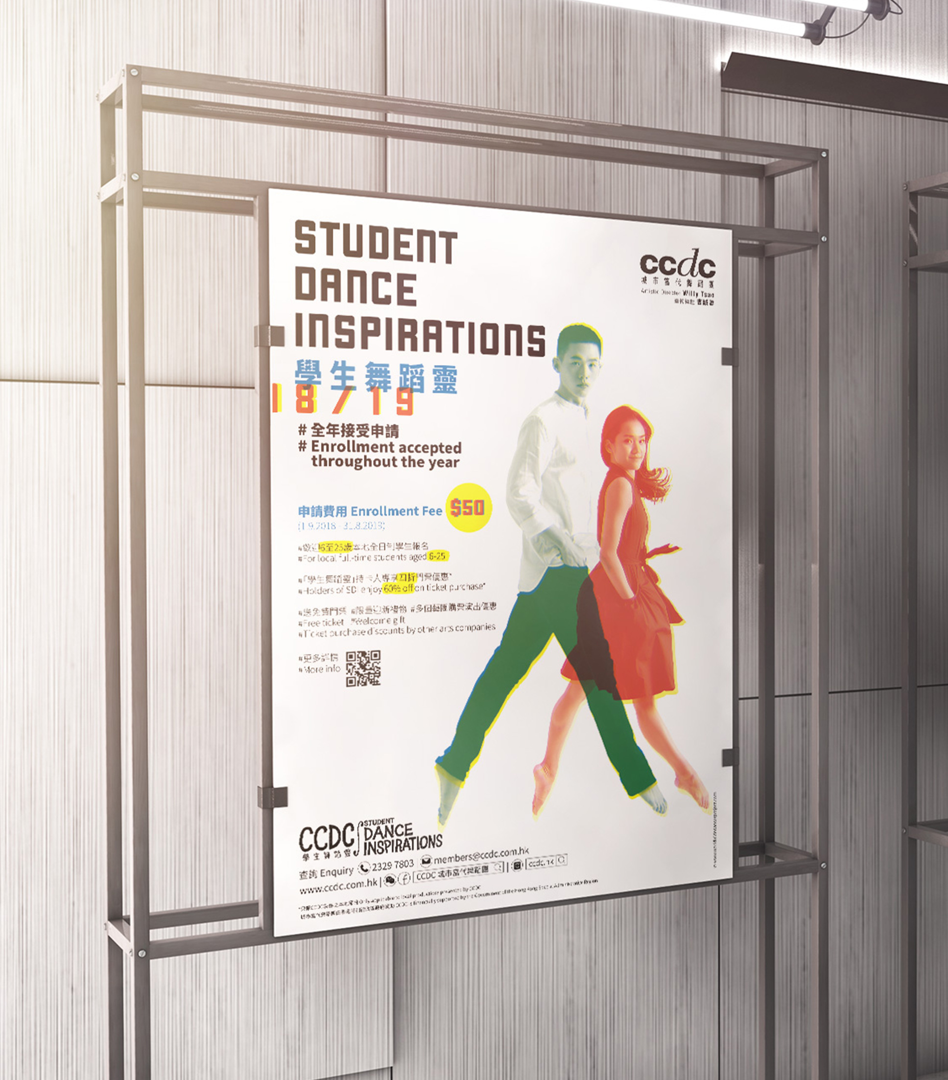 First, we created a set of welcoming, hand-crafted visual identity for CCDC Student Dance Inspirations prgramme’s camapign to put across the touchpoints, along with the headline highlighting the benefit.